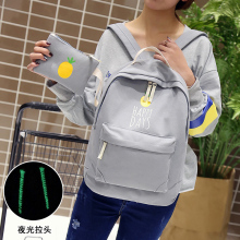 夜光小清新帆布双肩包女日韩版学院风高中生背包初中小学生书包