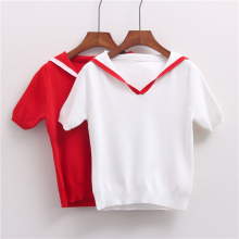 2017夏季韩版海军风宽松短袖T恤女半袖冰丝上衣短款学生体恤衫潮