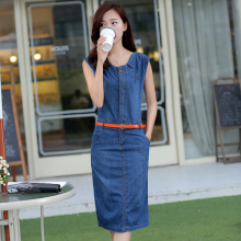 中长款牛仔连衣裙女2017欧美夏装新款韩版气质显瘦收腰薄牛仔裙