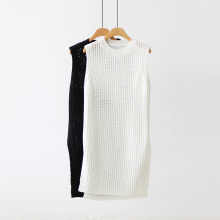 加长款镂空竖纹理无袖针织背心女套头百搭马甲毛线针织毛衣背心女