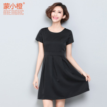 蒙小橙修身OL伞裙中裙夏季连衣裙优雅赫本小黑裙收腰百褶裙子L006