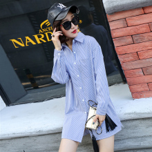 麦士惠17春装新款胖mm条纹衬衫长袖宽松韩范学院风棉衬衣中长款