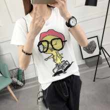 韩版短袖T恤女夏宽松显瘦圆领套头中长款卡通印花竹节棉学生上衣