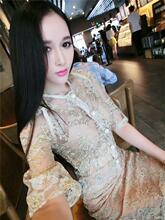 2017新款复古名媛重工金丝刺绣公主裙蕾丝包臀显瘦婚礼年会连衣裙