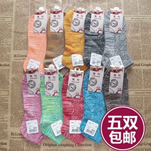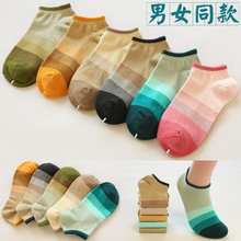 夏天全棉女低帮短袜子粗条纹渐变色袜子船袜纯棉潮袜春秋5双包邮
