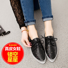 2017春夏新款头层牛皮小皮鞋女士休闲透气镂空女鞋尖头单鞋小白鞋