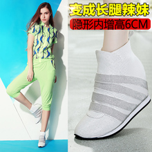 春秋新款魔术贴隐形内增高女鞋高帮休闲鞋女运动鞋韩版潮透气单鞋