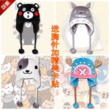 熊本毛绒帽子秋冬款龙猫毛绒围巾帽子猫咪后院夏目友人帐乔巴咸鱼