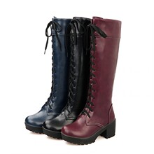 2016韩版新款春秋系带cos鞋粗跟尖头高筒马丁靴侧拉链男女长筒靴