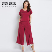 谜谜玛玛2017夏装重磅真丝女阔腿裤T恤裙裤套装桑蚕丝拉链连体裤