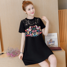 胖mm中长款蕾丝打底衫拼接雪纺t恤裙宽松加大码女装夏装半袖上衣