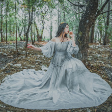快递在催促下及时赶到了,拍照很好看,衣服很仙,好美
