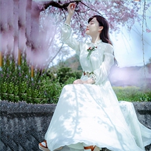 锦丝皱汉服刺绣连衣裙复古文艺修身长裙海边度假飘逸大摆仙女裙白
