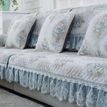 欧式四季防滑沙发垫 布艺奢华高档沙发巾 真皮组合套水蓝色