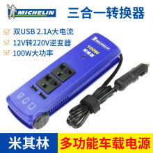 米其林车载逆变器12V转220V汽车电源转换器车用插座双USB口充电器