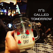 创意水果系列透明水瓶学生便携带手柄玻璃办公室泡茶吸管喝水杯子