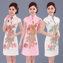 2017新款旗袍裙 夏装 时尚短款少女修身短旗袍礼服复古连衣裙夏季