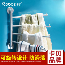 卡贝太空铝可旋转毛巾架浴室挂件卫生间活动毛巾杆双杆凉三杆架子