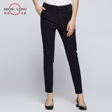 舒朗 2017春装新款紧身裤女高腰显瘦百搭黑色小脚裤长裤 DSF4F02A