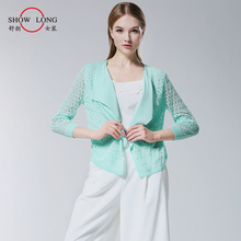 舒朗 2017针织冰丝披肩女 镂空修身显瘦中长款开衫外套 DSF2N09