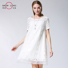 舒朗 2017夏装新款时尚白色蕾丝镂空连衣裙 短袖圆领女裙 DSF2L23