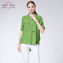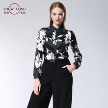 舒朗 2017春装新款 时尚修身短款显瘦衬衣桑蚕丝印花衬衫 DSF3C08