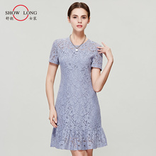 舒朗 2017夏装新款 时尚短袖修身显瘦蕾丝连衣裙中长款夏 DSF2L50