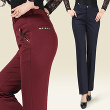 2017春季加厚中年女裤高腰直筒长裤 妈妈装中老年大码弹力裤子潮