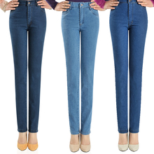 2016春款高腰牛仔裤女直筒裤中年大码弹力女式长裤修身显瘦女裤