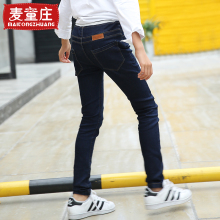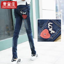 2017春装新款女童牛仔裤长裤中大童加绒厚儿童裤修身小脚裤春秋款