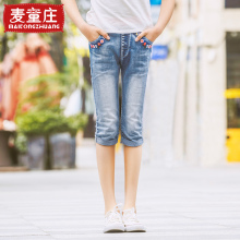夏女童牛仔裤中裤马裤五分裤中大童修身童装儿童裤子12-15岁弹力