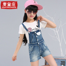 2017夏装新款女童背带短裤中大童牛仔裤儿童装夏季童裤裤子演出服
