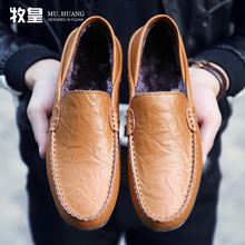 冬季真皮英伦休闲皮鞋套脚鞋豆豆鞋男加绒懒人鞋保暖驾车潮鞋