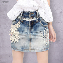买2送1阿卡百代丽夏装女手工钩花磨白牛仔裙包臀半身短裙QN14332X