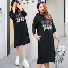 特加大码女装胖mm秋冬季卫衣连衣裙胖妹妹直筒开叉印花连帽打底衫