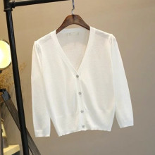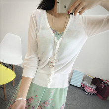 韩版夏防晒衣V领长袖针织开衫空调衫秋季大码短款百搭披肩外套女