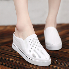 乔圣堡春季新款真皮韩版女鞋坡跟内增高单鞋镂空透气休闲平底单鞋