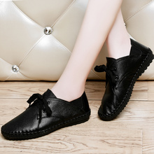 乔圣堡春夏新款真皮单鞋女平底休闲低跟妈妈鞋软底系带豆豆鞋女鞋
