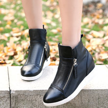 2016秋冬新款真皮马丁靴女潮时尚加绒短靴厚底内增高女靴保暖棉靴