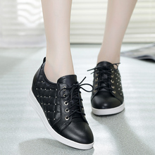 乔圣堡春秋新款单鞋女真皮厚底内增高休闲鞋韩版运动系带高跟女鞋