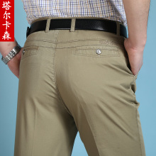 塔尔卡森春季商务休闲裤纯棉双褶中老年宽松直筒男裤高腰长裤爸爸