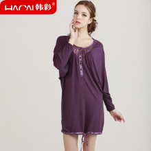韩彩女士睡衣春秋季睡裙莫代尔长袖睡裙蕾丝睡衣家居服女薄款
