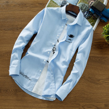 春季男士修身衬衫纯色免烫打底白衬衣韩版学生休闲长袖青年寸衫潮