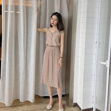 韩版时尚休闲套装夏装碎花雪纺吊带上衣+高腰半身裙长裙两件套女