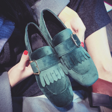 韩版百搭方头粗跟丝绒单鞋女中跟秋冬英伦流苏高跟鞋皮带扣深口鞋