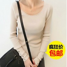 韩版春季新款贝壳扣螺纹长袖修身打底衫针织套头线衫毛衣女外套