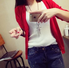 春秋韩版新款女装修身纯色短款薄针织衫女开衫大码外搭空调衫外套