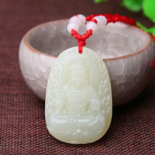 开光和田玉本命佛吊坠 文殊菩萨 生肖兔守护神男女挂件新品