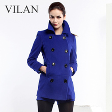 vilan/慧兰冬款专柜正品韩版修身双排扣羊毛大衣毛呢外套小外套女