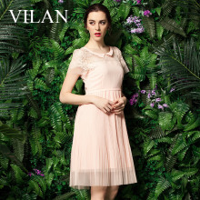 vilan/慧兰夏装专柜正品雪纺网纱连衣裙百褶裙